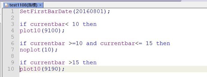 if currentbar >=10 and currentbar<= 15 then