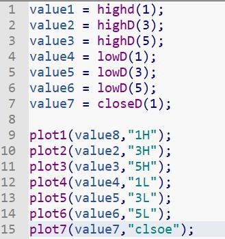 我的本意是在1分鐘K線圖裡面顯示前3跟5日中的最高低價位畫一條線