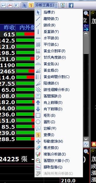 技術分析支援的分析工具如下, 只能使用系統內建工具, 謝謝.