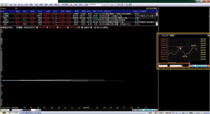 請問雙座標圖可以加入均線嗎? 範圍可以固定嗎? 日期部分是反白[橘色方框]?