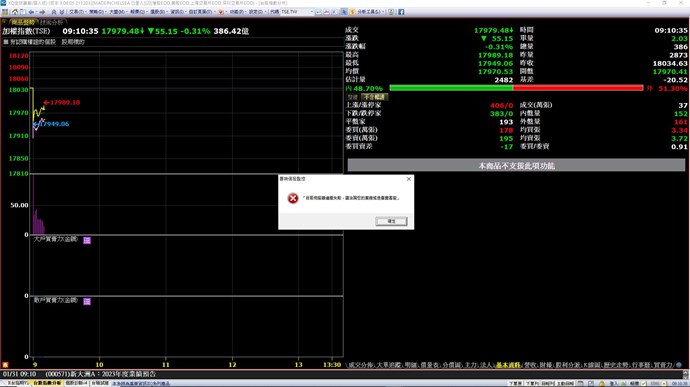 近期雲端個股監控時常無法使用,要設定個股價位警示時、或是從上方選單要開啟雲端個股監控畫面,都會出現下方通知: