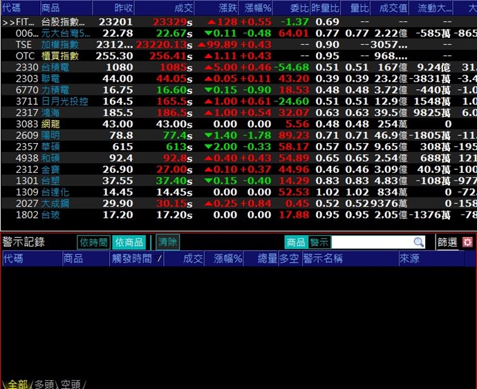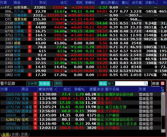 今日用另一台電腦的狀況也是一樣,只要重新關閉再開啟XQ程式,今日開盤到收盤的警示紀錄就不完整了
