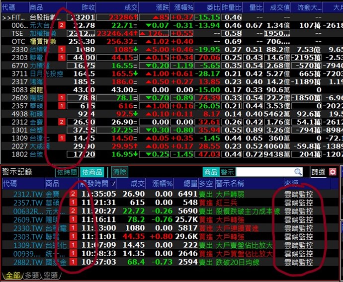 在警示紀錄頁面欄框內,在盤中都有正常跳出顯示,但收盤後雲端監控即會清空,之前都會保留到隔日開盤前,這樣對晚上要再細看分析時造成很大困擾.