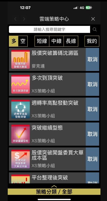 補充一下是雲端策略的多單標的都無法跳出選股標的警示(但空單標的少數策略有跳出)。手機版本與電腦版本都一樣。手機的XQ軟體重新安裝。還去看之前討論將它監控只剩雲端策略還是一樣。再麻煩管理員大大處理一下