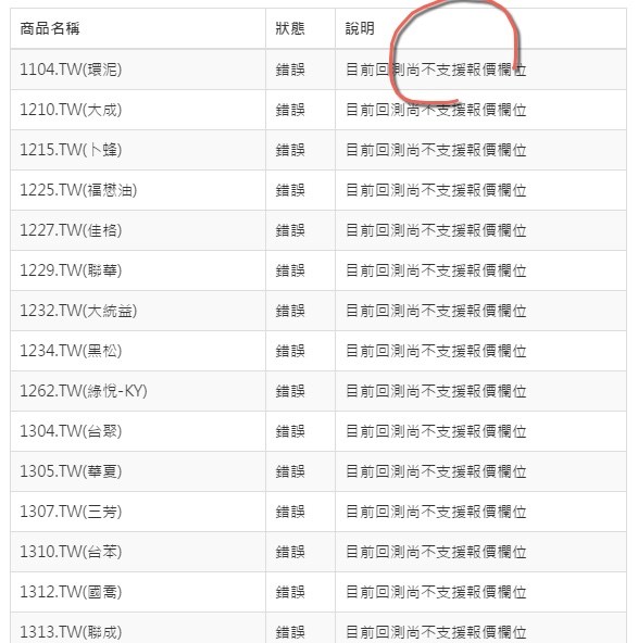 故回測無法使用報價欄位資料,