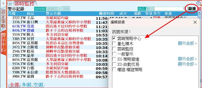 但在警示中心或權證模組的自動監控都沒跳出來,
