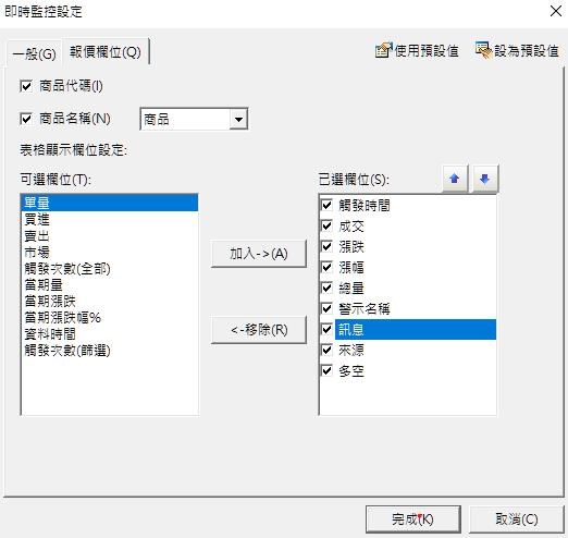 但你若要顯示觸發當下訊息 要把即時監控頁面的訊息打勾