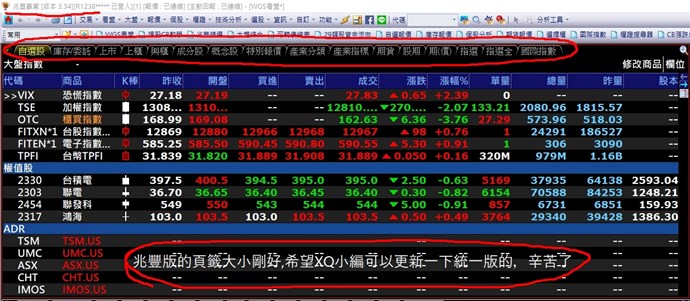 統XQ一卷商7.04版本 整體畫面來看 頁籤跟滑鼠指標差不多大