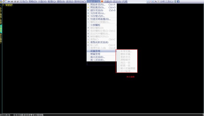 ◎所在的頁面若為系統頁面(如國際股市行情),可點選「編輯→複製成新頁面」,螢幕標題列會變更成〞未命名n〞,即可進行編修。
