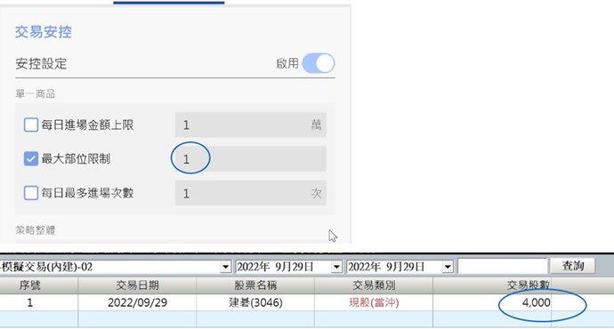 交易安控有設定持有最大部位是1,但在當日的成交記錄中卻有4筆,