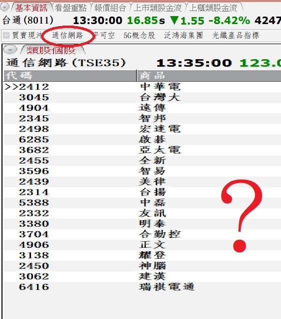 想請問一下XQ大大,"台通" 這檔股票是被分類在上市通信網路,但是我點到通信網路類股時,卻找不到 "台通" 這檔股票,想請問一下,XQ的類股分類是否準確呢? 感謝