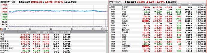 有些類股大於二十個,但在大盤指數及成交量裡面,右邊只會顯示20檔