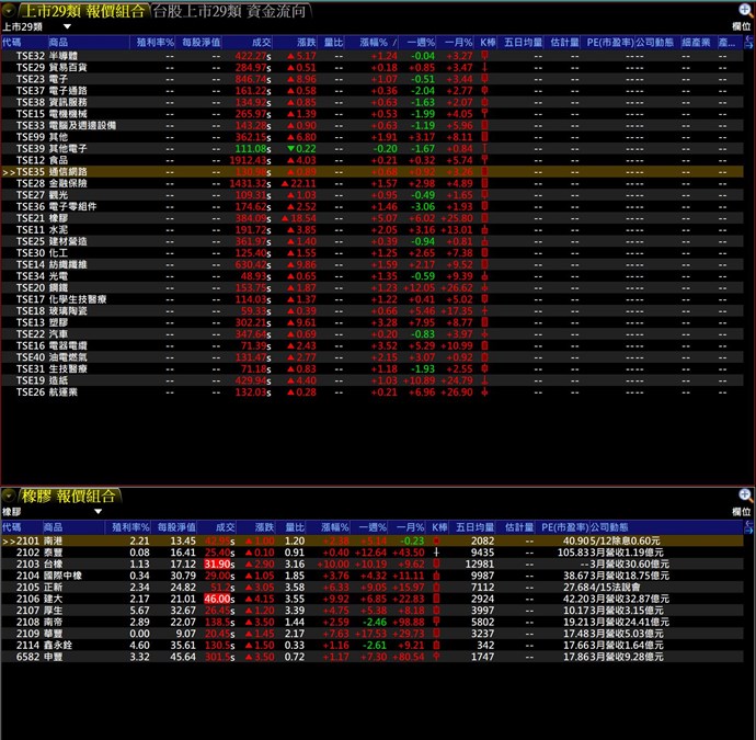 請問如何設定,讓我可以點選上面的類股,在下面帶出該類股的商品組合的報價,