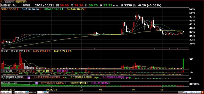 您好,K線的成交量含一般、零股、盤後定價、鉅額交易,新揚科(3144)5/21成交量與交易所揭露資訊一致。(可以參閱交易所表格下方有寫,他的成交量包括那些項目)