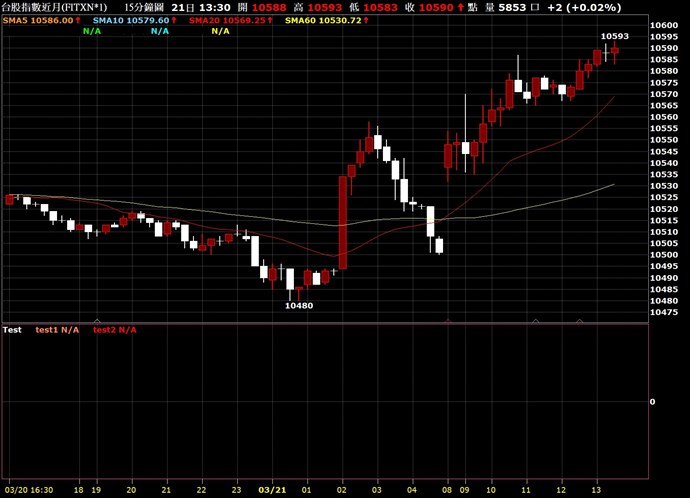 其他測試:刪除所有自訂函數,前述隨便 Key 的自訂指標依舊異常 (範圍包含個股、期貨、選擇權的所有分鐘系列頻率,摩台則正常),即使關閉程式重新登入也沒有資料顯示。