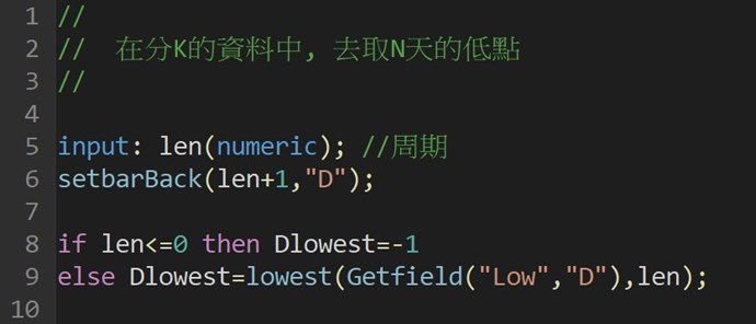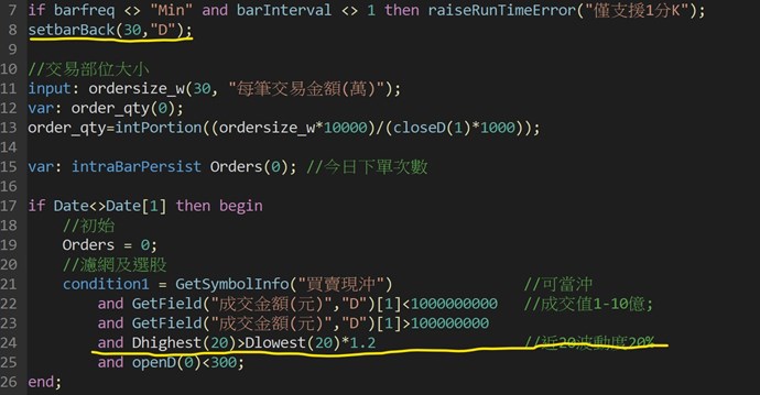 這支程式在1分K下執行, 我有設定 setBarBack(30, "D")