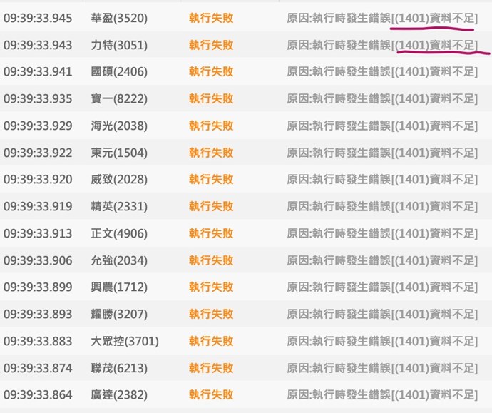 但在開盤時間, 由程式交易去跑時就會出現資料不足的情況! 而且, 少部份股票正常, 大部份股票異常!