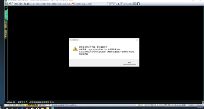 請先關閉XQ,並找到「C:\SysJust\XQLite\User\您的帳號\Data\DaSysFileSQLiteTW.db」,並將此檔案重新命名為「DaSysFileSQLiteTW-bk.db」,再開啟XQ。