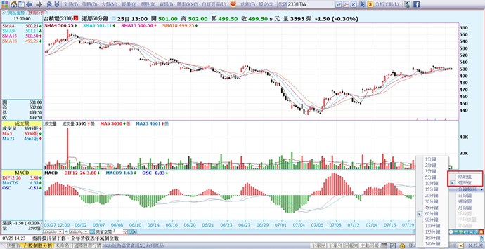 請問30分的K線圖也可以有還原嗎 ?