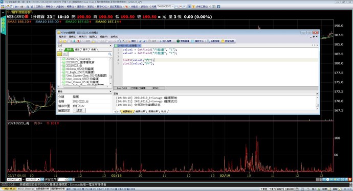 小幫手方才使用XS自訂指標是可以顯示 02/17 ~ 02/19 的內盤量與外盤量資訊,如下圖與附檔圖。
