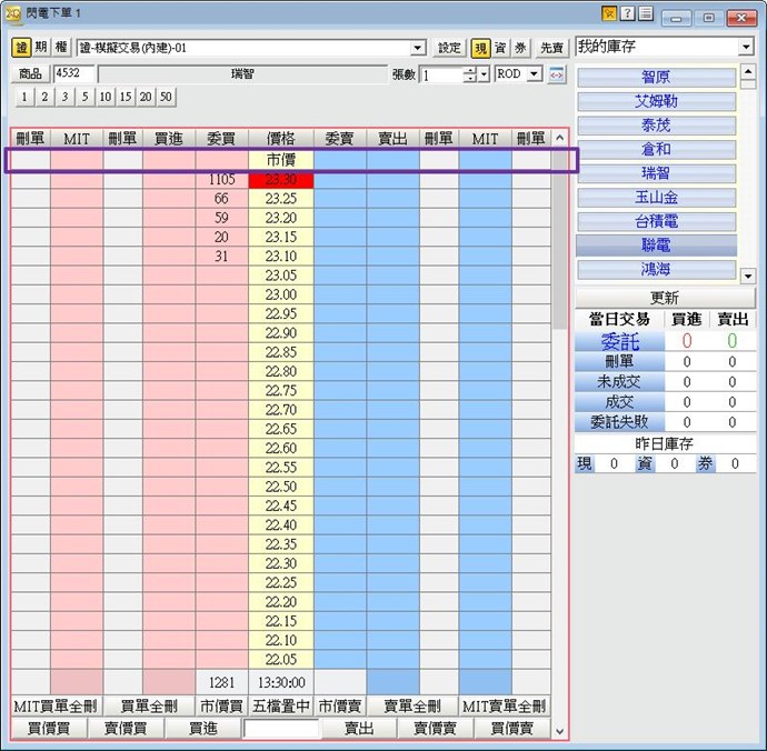 報價區域的"市價",部份券商因客制是有開放,XQ閃電下單目前不支援(因會有用戶誤點的情形)
