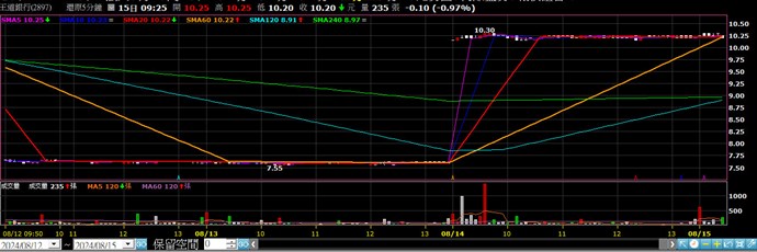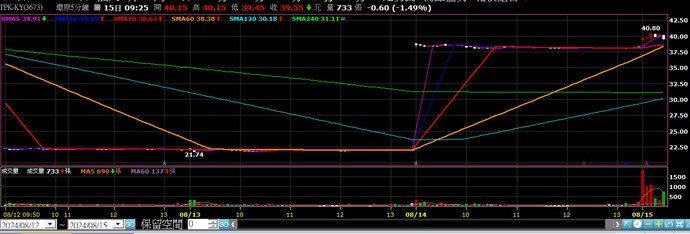 說明: 當天的5分K正常, 但是前一日的5分K價格就異常的低