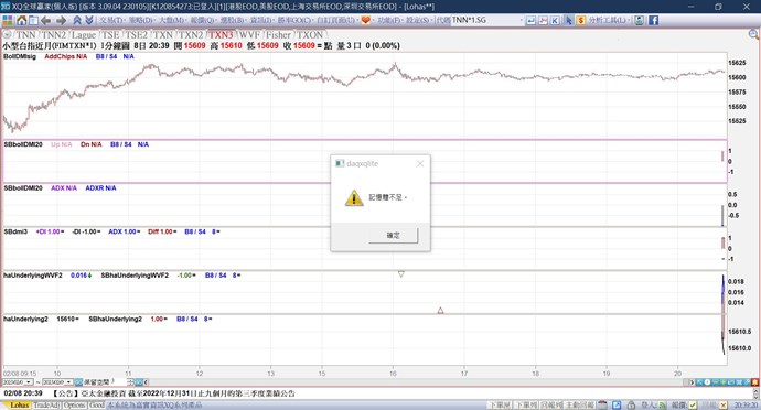下面連結的最後回覆裡面, 曾經提過: 為了不用等到天荒地老像當機一樣, 我換了目前消費型可說最強悍的機器配備 ( CPU: i9 13900K (24實體核心, 大核超頻上6G Hz & 小核超頻上4.6G Hz) + 64G RAM ) , 結果仍然有幾次跑不出指標就算了, 竟然顯示我的64GB還會記憶體不足而停止計算??? 如附圖1 & 2, 後來用工作管理員去看, 明明記憶體還剩一堆, 自己不去利用, 還敢說記憶體不足? log 檔案已經寄往 XQservice@xq.com.tw, 請查清楚這種配備還跑不出指標計算結果的原因. 謝謝!