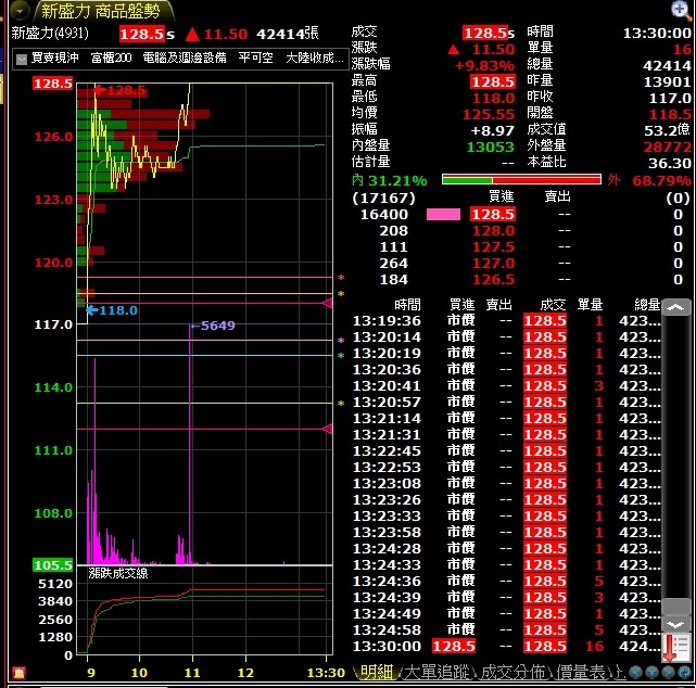 8/6 新盛力 AH119.25 離開盤價大概是 2%