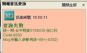 P.S. Code:8200 指的問題同 Msg 所述:所輸入參數有誤;
