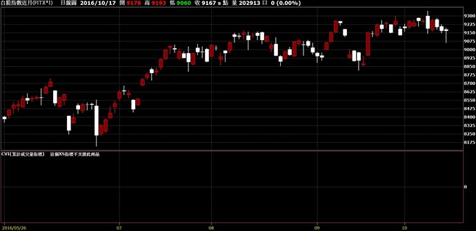 你好,想請問一下,台指期是否能使用XS指標下的CVI(累計成交量指標)。目前顯示,XS指標不支援此商品,是否有別的方法使用,謝謝。
