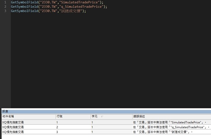 GetSymbolField 指令不接受試搓價,有方法可以解決嗎?