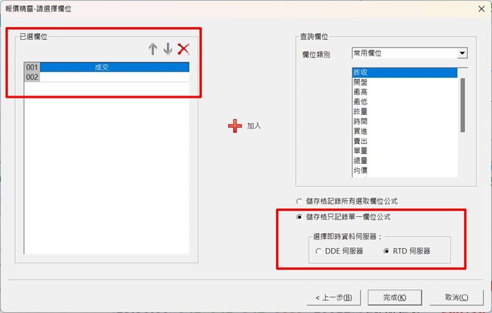 ✅ XQ DDE輸出需使用"報價精靈"功能,欄位就是目前的對話盒內看到的,可以由此選擇您需要的欄位。