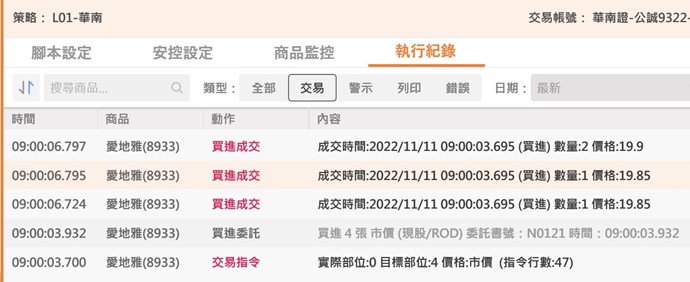 但, 它還是下單了! 就在 9:00:03 時就觸發了, 顯然是第一個tick就觸發訊號了!