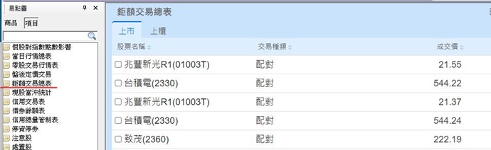 「鉅額交易」,是很重要的資訊