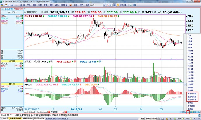 請教 XQ系統中的K線 ,如何設定還原權值。