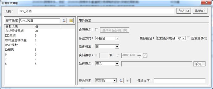 SetInputName(3, "布林通道標準差");