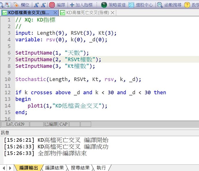 其中,k crosses above _d 代表的是K值向上跨越D值,