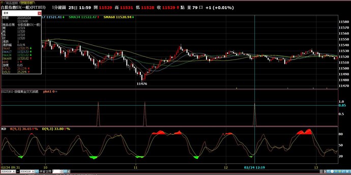 對照的系統指標應該是KD(帶入值為9,3,3),猜測您的圖片的KD值設定有誤