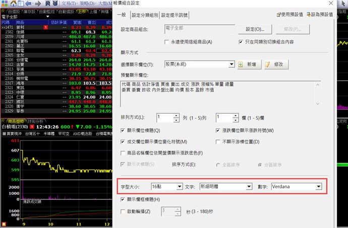 您好,報價字體大小可以在頁面上按「設定→一般→字型大小」來調整看看。
