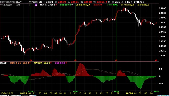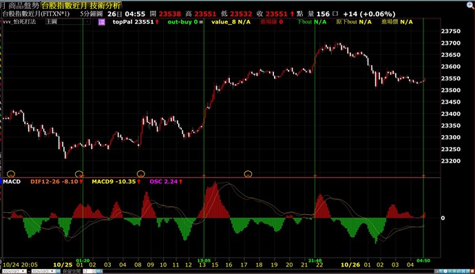 我想在5分K頻率畫出10分K綠柱轉紅柱的點,