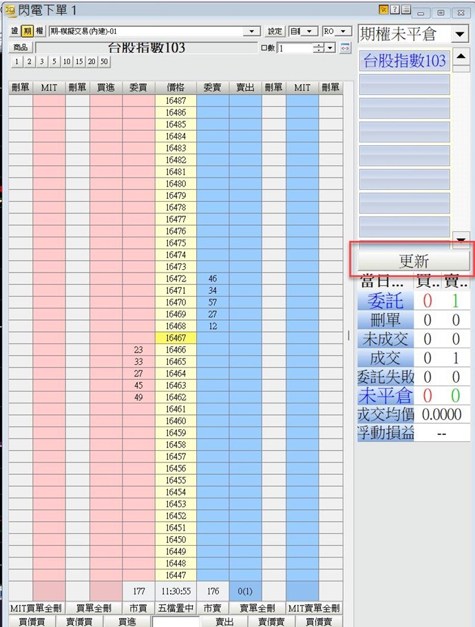 平倉後,成交均價/浮動損益會持續存在,必須關閉閃電下單頁面,重新開啟才會消失