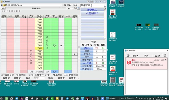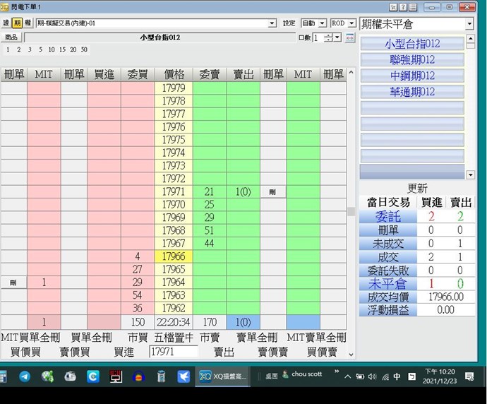 A3:要是「平」賣才對,小編中午操作閃電下單 MIT 功能,新進場新倉一口,在出場平倉一口,是「平」賣。