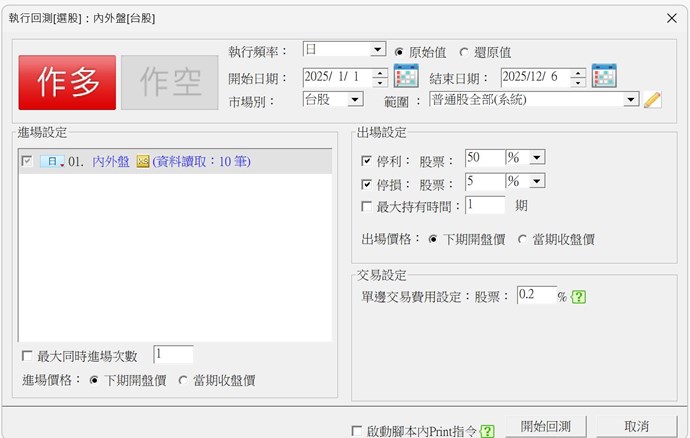 這個選股策略在編譯並執行完回測後,在「商品統計表」看到的畫面長這樣: