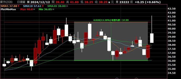 改用20天(原碼為5天)為區間, 編譯無誤, 可是顯示高低線 卻只是以 10天的最高(低)點為判斷準則畫出, Why?