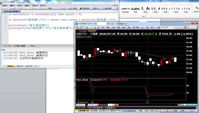 意思為:若當日最高價大於當月中歷史的日最高價,則用Value1記錄下來,並將數值秀在副圖上;