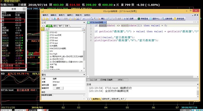 因為 07/03 為當月的最高價( 460 ),而 07/16 當日最高價為 414.5,因當日最高價沒有大於當月最高價,故在副圖上秀出當月最高價( 460 )
