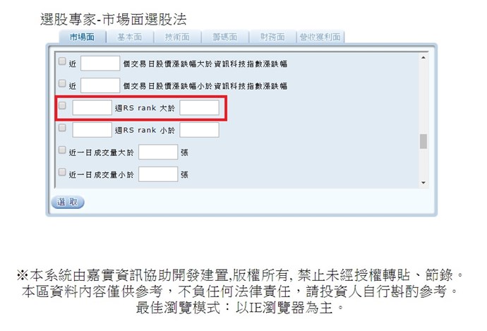 2.RS rank 也是MoneyDJ選股大師中的選股條件之一