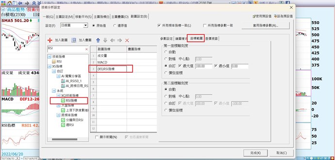 您好,RSI、KD的座標軸數值,如果是用傳統指標,目前不提供座標軸更改;