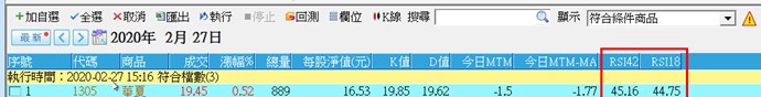 請問小幫手,在XSScript中以下列程式計算RSI來選股,天數用42當長天期,短天期用18,但為何選股結果中顯示的數值與