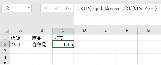 用EXCEL 輸出 RTD 伺服器 數據 顯示 #N/A 沒顯示數值